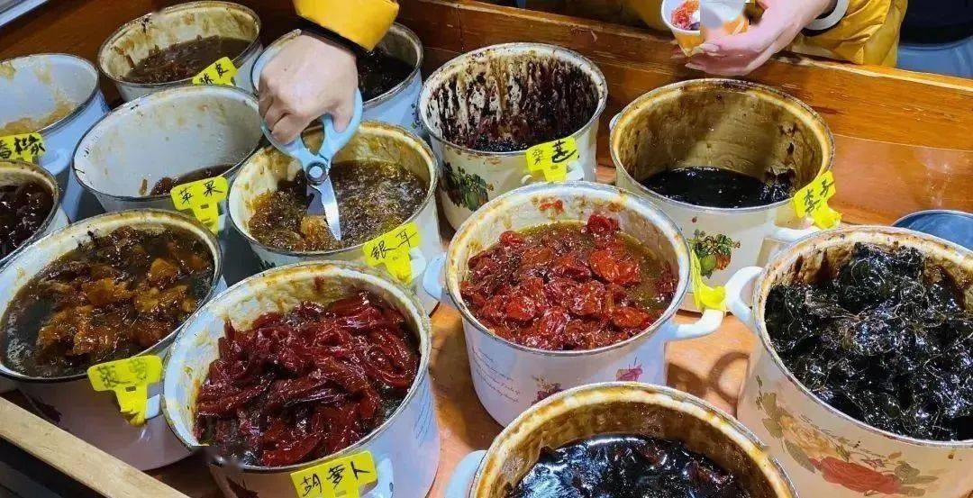 是丽江地区纳西族传统美食,逢年过节或婚宴、生日宴、乔迁新居都会摆上一桌蜜饯,供来到家里的亲戚朋友品尝。对于纳西族而言,蜜饯是必不可少的一道甜食,已经融入日常生活中难以割舍。